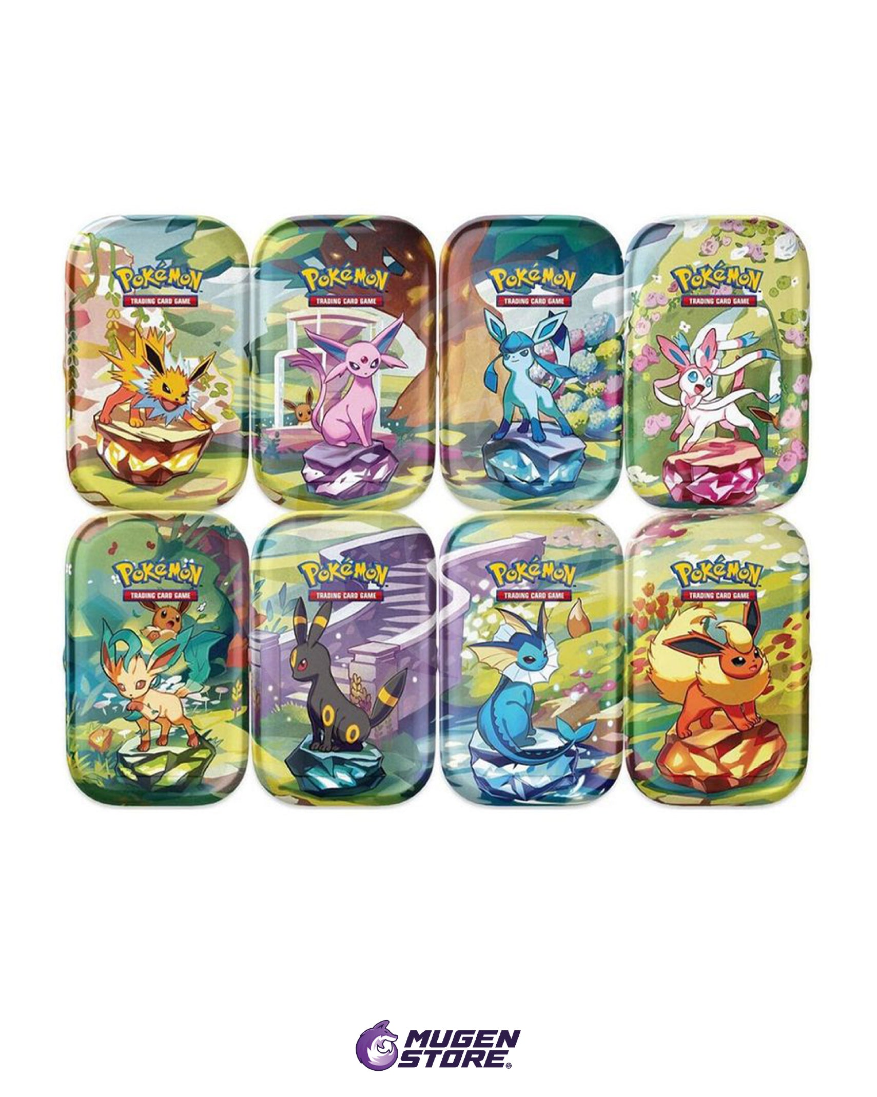 Celebra la versatilidad y el encanto de Eevee junto a todas sus evoluciones en esta hermosa colección de minilatas del Juego de Cartas Coleccionables Pokémon. Cada minilata presenta un diseño ilustrado único, ideal para fans, jugadores y coleccionistas.